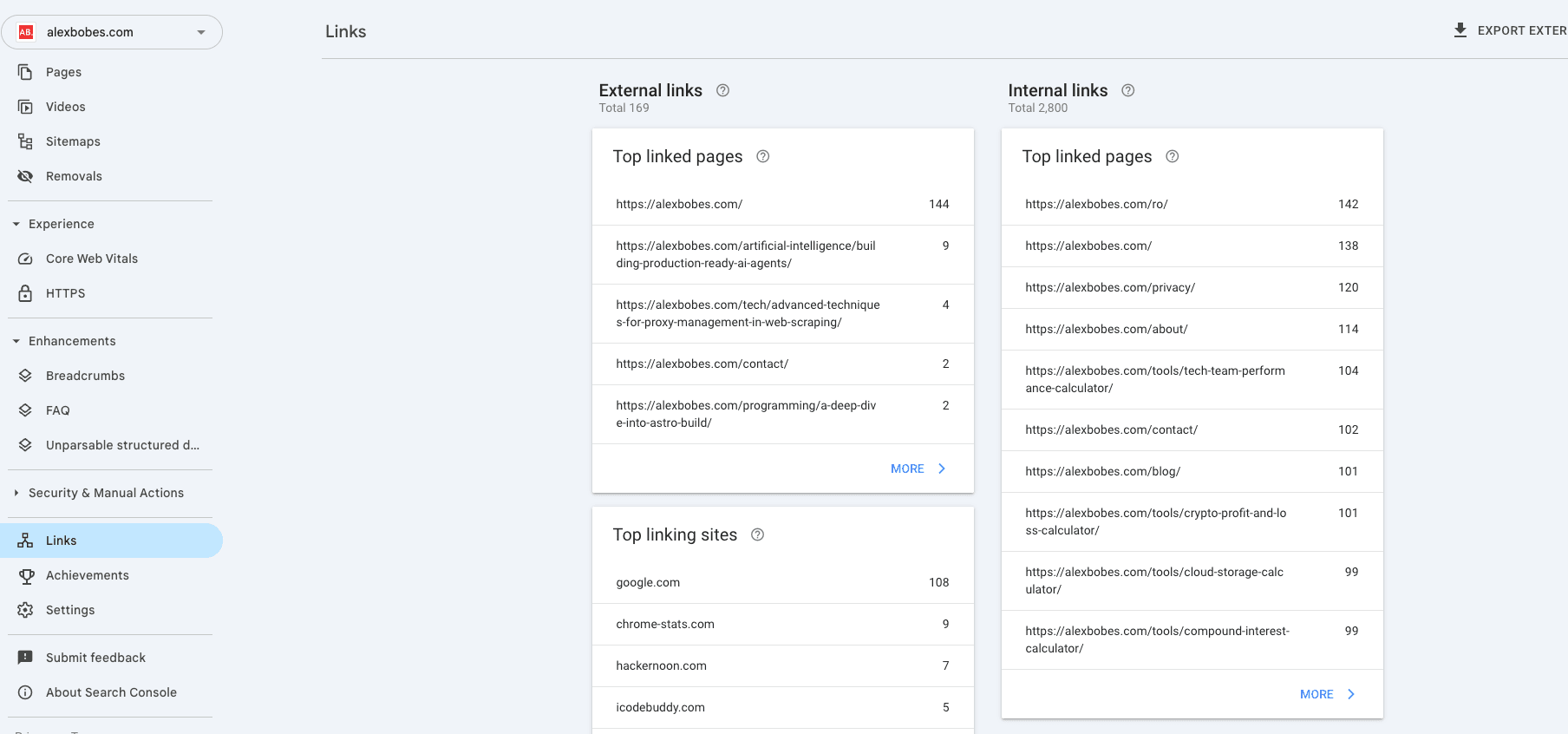 Google Search Console – Links Section